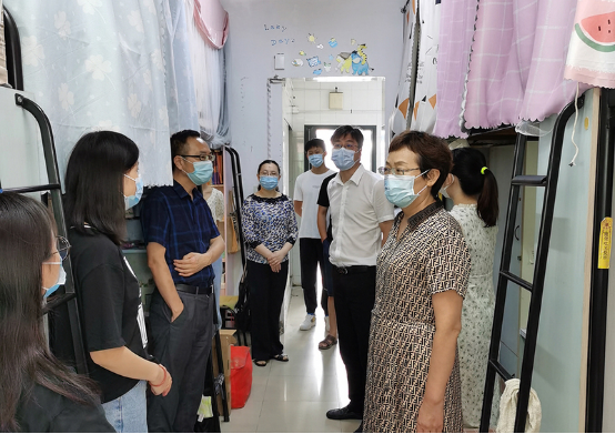 8月30日上午,理学院领导检查线上教学情况,并深入学生宿舍,看望慰问在校学生,调研学生学习和生活情况。