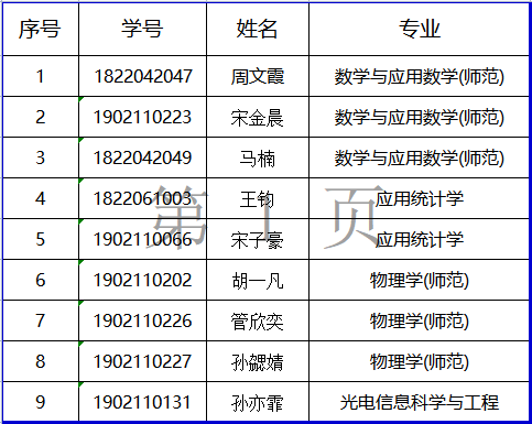 根据教育部《2023年全国硕士研究生招生工作管理规定》、永利集团《关于做好推荐2023年优秀应届本科毕业生免试攻读硕士学位研究生工作的通知》和《理学院2023年推荐优秀应届本科毕业生免试攻读硕士学位研究生工作实施细则》等相关文件要求精神,经学生自主申报,学院审核,现将拟推荐2023年免试攻读硕士学位研究生名单公示如下: