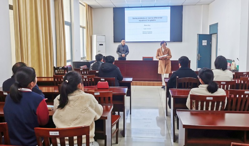 4月8日上午,复旦大学华波波教授做客永利集团理学院,做了题为“图上的一些‘偏微分方程’问题”的学术报告。报告由理学院院长陈玉娟主持,理学院部分教师和研究生聆听了报告。