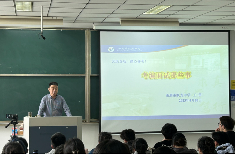 4月20日,理学院邀请南通市学科带头人、南通市跃龙中学副校长王雷老师作“考编面试那些事”的报告。参加报告会的有2021级物理学(师范)专业的全体学生、物理学(师范)专业的专业负责人和物理教学法教师。