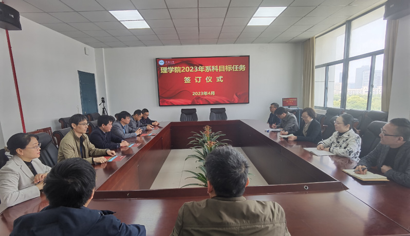 4月26日,理学院举行2023年度科室目标任务书签订仪式。院长陈玉娟、院党委书记朱城代表学院与系科主任和党支部书记签订《理学院2023年度系科目标任务书》。