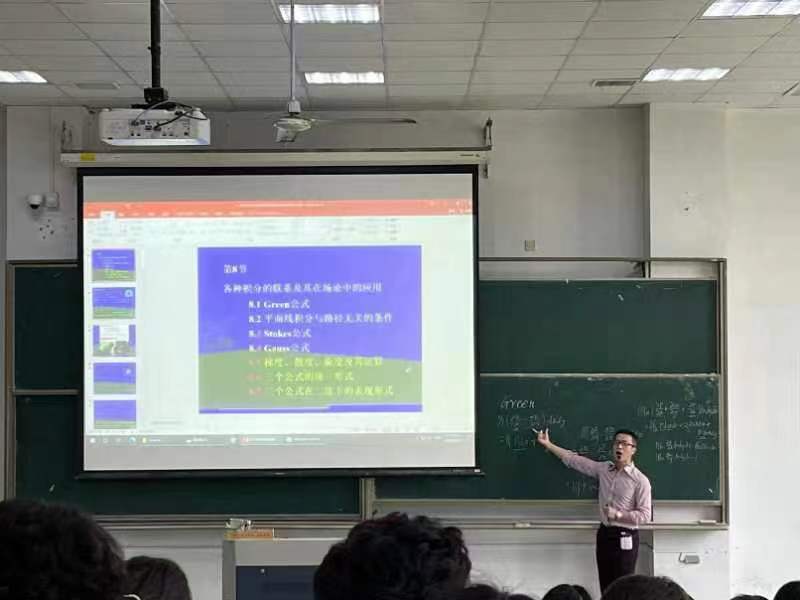 为进一步提升教师的教学理念,优化课堂教学模式,深化课程思政示范课建设,4月27日下午,江山教授在啬园校区一号楼105教室给统计221、222班学生上了一堂关于《数学分析(二)》的课程思政教授示范课,理学院部分老师现场观摩。