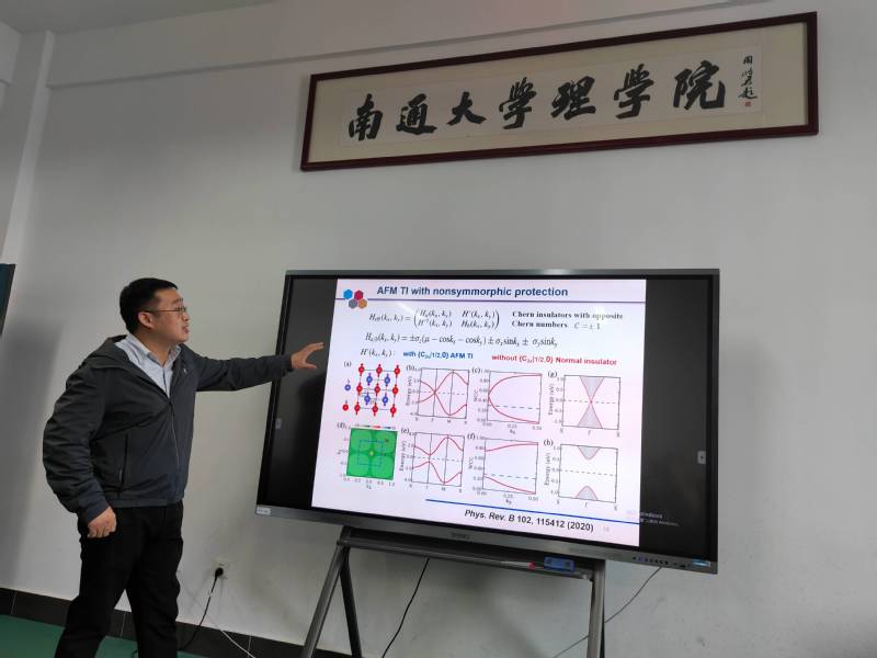 4月27日下午,山东大学齐鲁青年学者牛成旺教授应邀访问永利集团理学院,并做了题为“二维磁性拓扑绝缘物态的理论研究”的学术报告。报告会由张国仁老师主持。