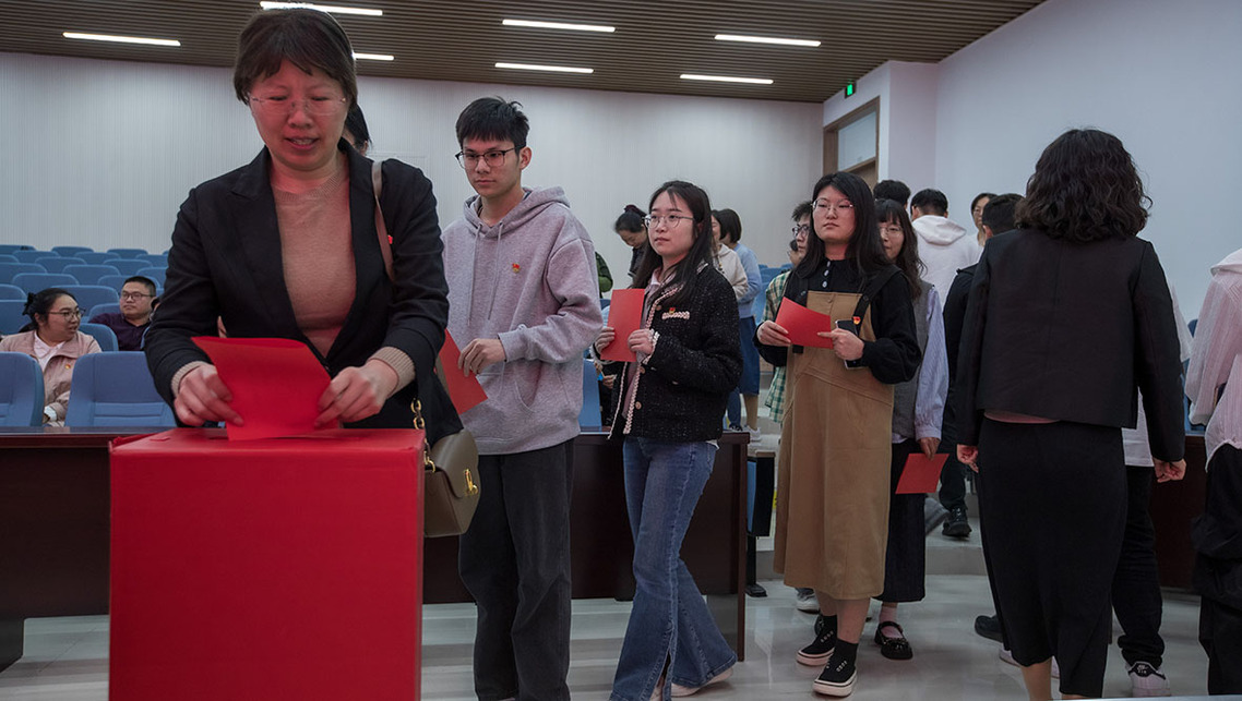 党员依次投票。