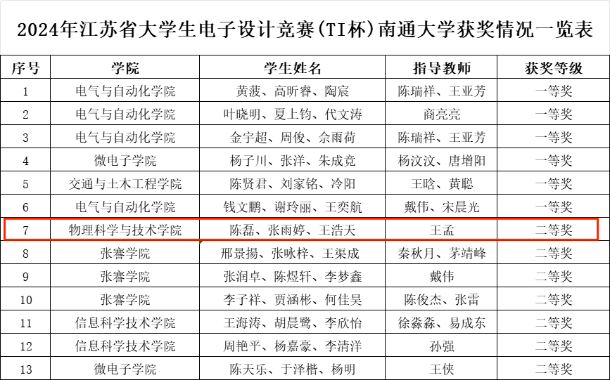 近日,2024年江苏省TI杯大学生电子设计竞赛结果公布,经过激烈角逐,我院由陈磊、张雨婷、王浩天三名同学组成的团队(指导教师:王孟)荣获二等奖。