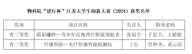 7月25-27日,“建行杯”江苏大学生创新大赛(2024)决赛在南京理工大学举办,我院首次入围比赛,并获省三等奖2项。
