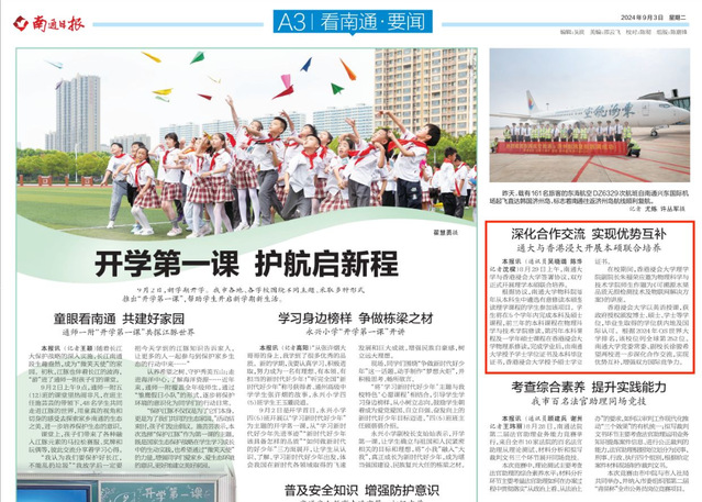 近日,物科院与香港浸大理学院开展本硕联合培养项目被《交汇点新闻》《江苏科教头条》《南通日报》《南通发布》等媒体关注报道。