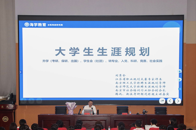 刘秀全结合自身发展经历讲述了个人求学、求职经历,幽默风趣的语言快速拉近了他与学弟学妹们的距离。围绕“大学怎么过”和“未来升学规划”两个方面,刘秀全指出大学生首先要有端正的学习态度,要让自己“忙”起来,自觉培养学习主动性,确定并努力追逐一个又一个发展目标。何谓大学?刘秀全认为读大学的根本目标是让自己成为一个完整的人,要从认知、能力、素养、学识等各方面不断完善自己,他围绕“主动、学习、沟通、奋斗”四个关键词,通过生动的案例和深入浅出地解读与分享,向同学们讲述了做好生涯规划的重要意义,以及找准自己生涯定位和获取个人发展信息的技巧与方法。就未来升学规划,刘秀全详细介绍了保研 、考研、出国等多种升学路径,他用一个个生动的实例,帮助同学们厘清未来可能选择的发展方向。交流互动环节,同学们踊跃发言,结合个人实际提出有关未来发展的困惑,刘秀全耐心细致地分析指导,为刚刚开启大学生活的同学们提供了宝贵的意见和建议。现场新生纷纷表示要把握好大学时光,刻苦学习,对未来做好明晰的规划。