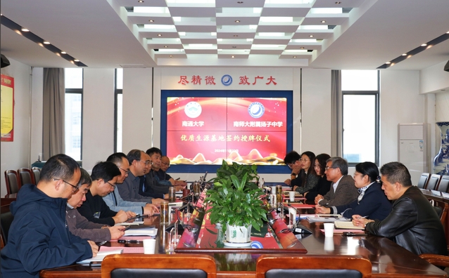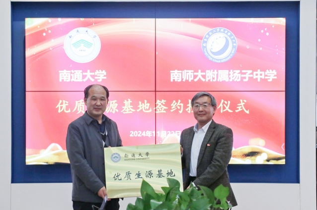 11月22日下午,我校与南京师范大学附属扬子中学举行优质生源基地签约授牌仪式。校党委常委、副校长徐骏向南京师范大学附属扬子中学授牌。