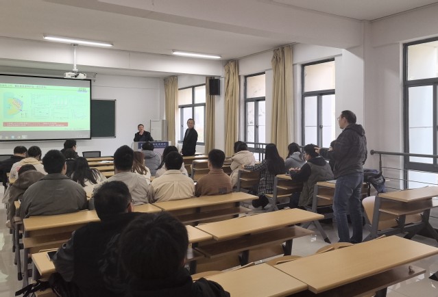 报告主要聚焦于工业级储氢问题,许小勇首先介绍了高电流密度水电解工业规模绿色制氢技术的研究背景和重要价值。接着,针对工业级高电流密度操作下的活性和长期稳定性两个问题,介绍了高电流密度对催化剂电催化行为的影响,包括催化剂重构、催化动力学、长期稳定性等,讲述了自己课题组从基本材料设计原理到实验再到工业化生产中一系列关键问题。报告结束后,现场师生积极参与讨论,展现出对这一前沿研究领域的浓厚兴趣。