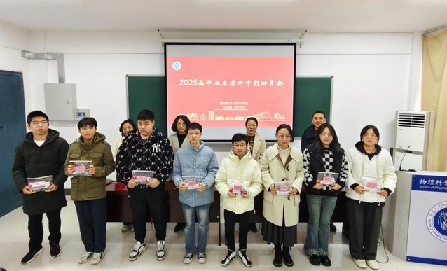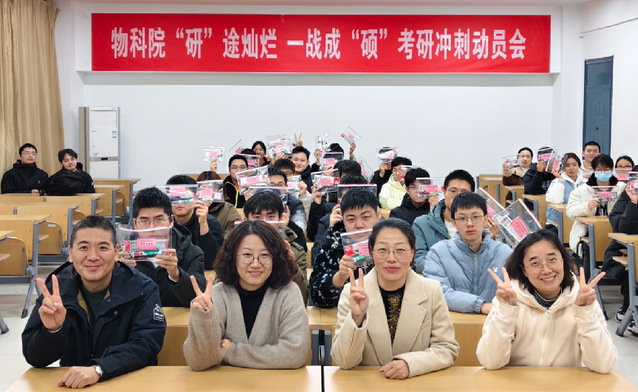 11月29日,物科院举行2025届毕业生考研冲刺誓师大会。学院党总支书记徐凌,党总支副书记、副院长陈丽,学工办主任陈炜出席活动,学院团委书记、21级年级辅导员陈烨主持会议。