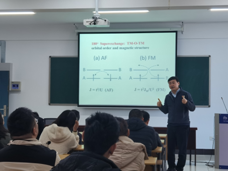 报告结束后,参会师生就磁性交换机制、自旋-轨道耦合效应、计算技术等方面与吴骅进行了深入的探讨和交流。