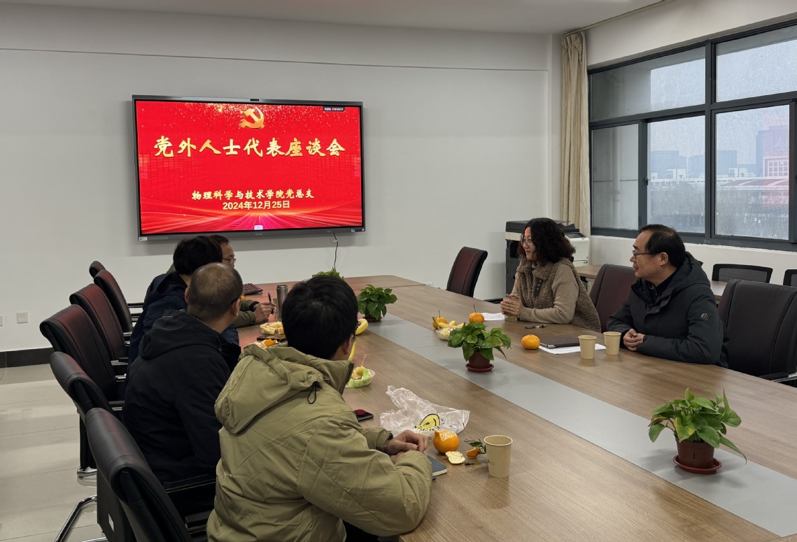 12月25日下午,物科院举行党外人士代表座谈会。学院党总支书记徐凌出席会议,学院民主党派、无党派人士代表受邀参加座谈会,学院党总支统战委员、副院长于忠卫主持会议。