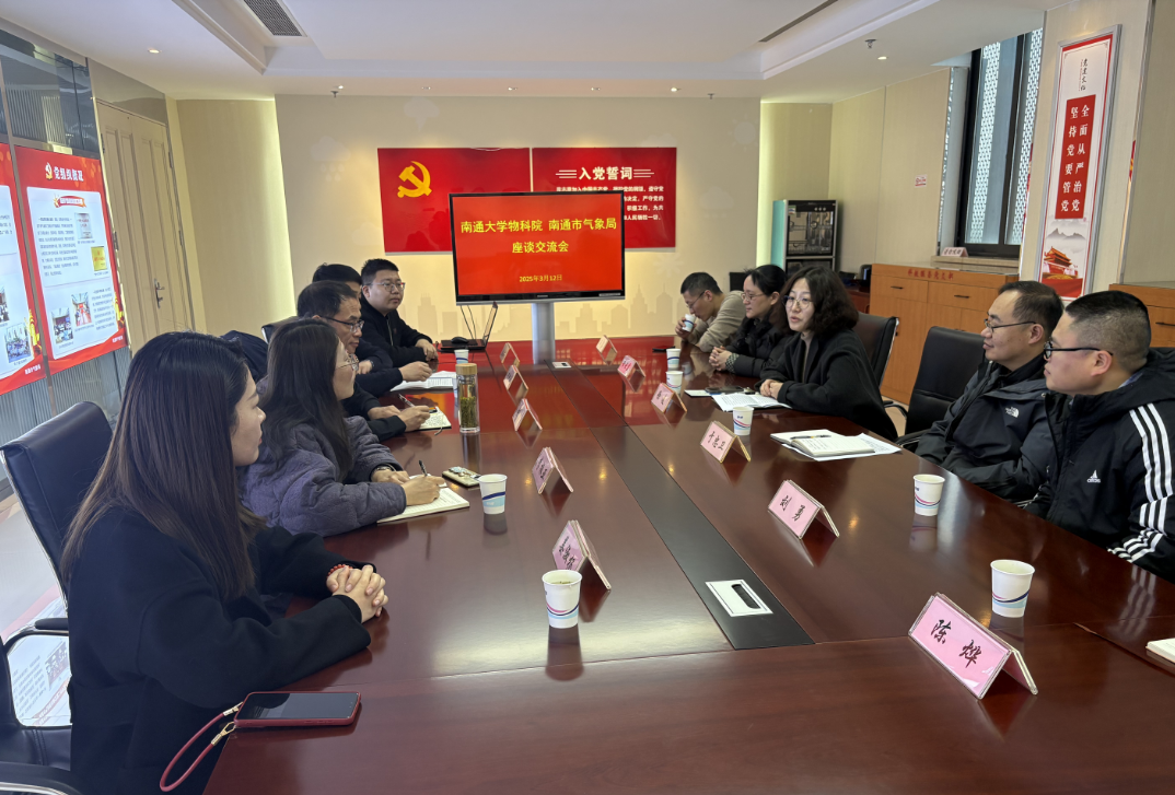 3月12日上午,物科院党总支书记徐凌率领学院一行6人赴南通市气象局调研交流。南通气象局党组成员、副局长张鹏及相关处室负责人参与接待并座谈。