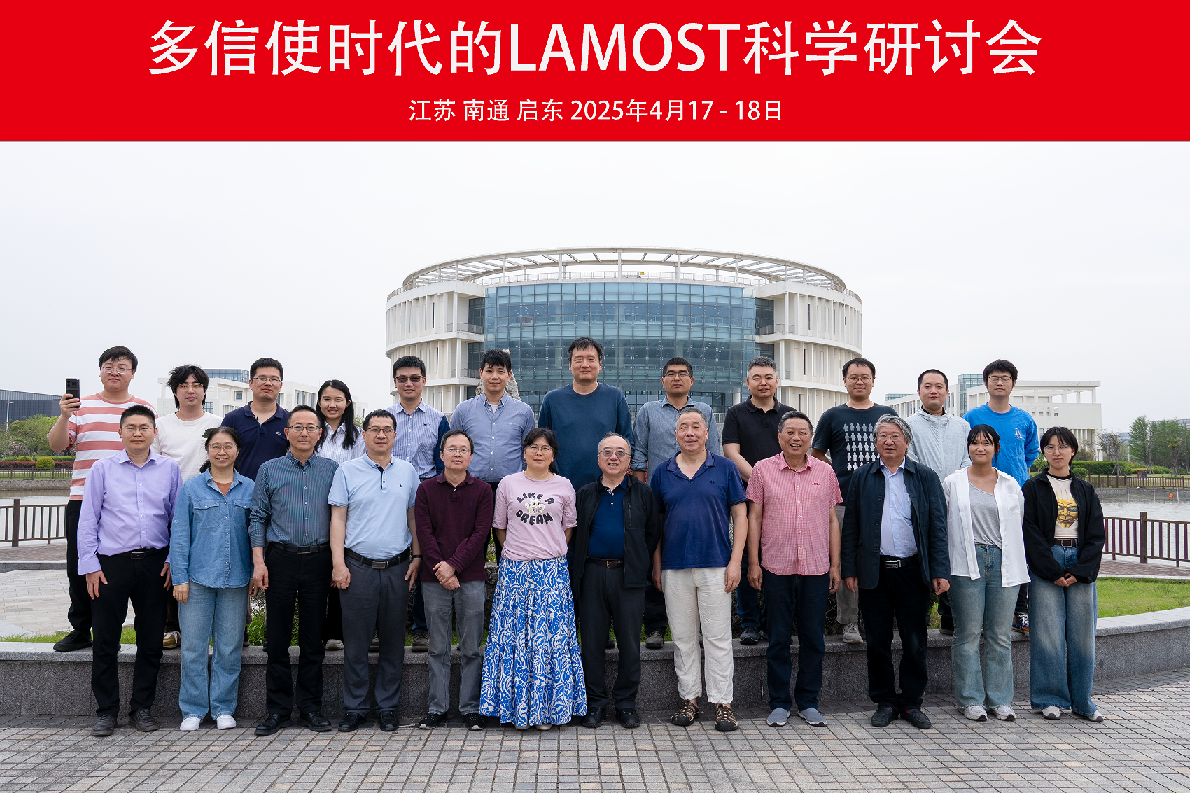 4月17日至18日,由中国科学院国家天文台主办,物科院承办的“多信使时代的LAMOST科学研讨会”在启东校区举行。来自中国科学院国家天文台、南京紫金山天文台、南京天文光学技术研究所、上海天文台、新疆天文台、云南天文台、北京师范大学、厦门大学等多家科研机构的专家学者出席会议。