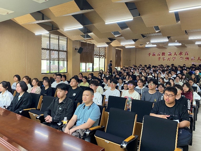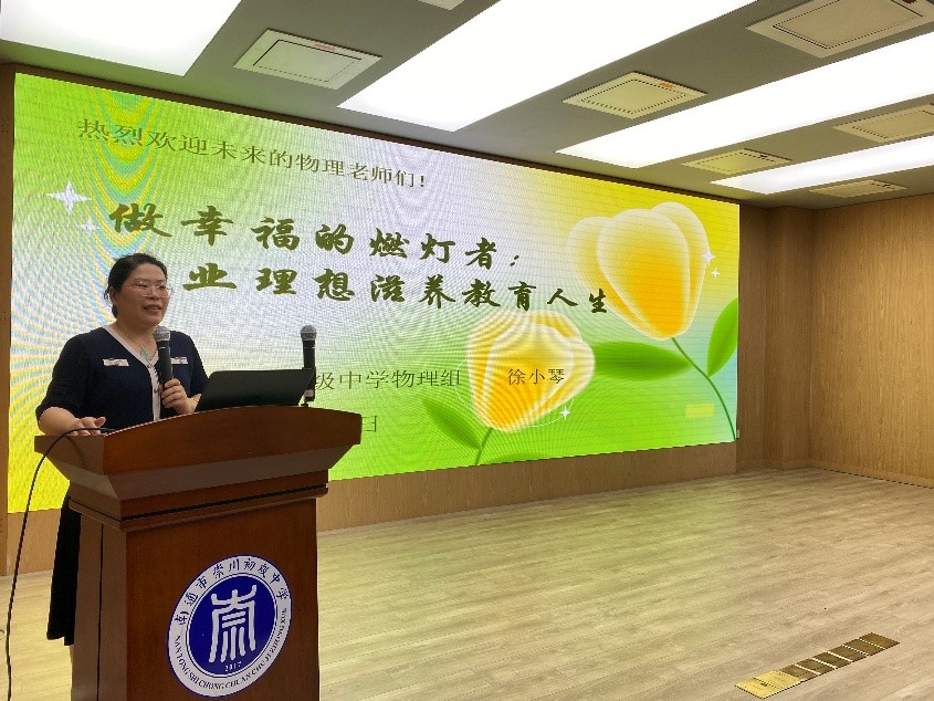 最后崇川初级中学徐小琴老师以“做幸福的燃灯者,职业理想滋养教育人生”为题,为师范生作专题报告。徐小琴从个人专业成长剖析入手,向2023级物理师范生展示了教育情怀与专业能力协同发展的职业路径,并勉励师范生们树立教育理想、勤奋学习,切实提升物理水平和教学水平。