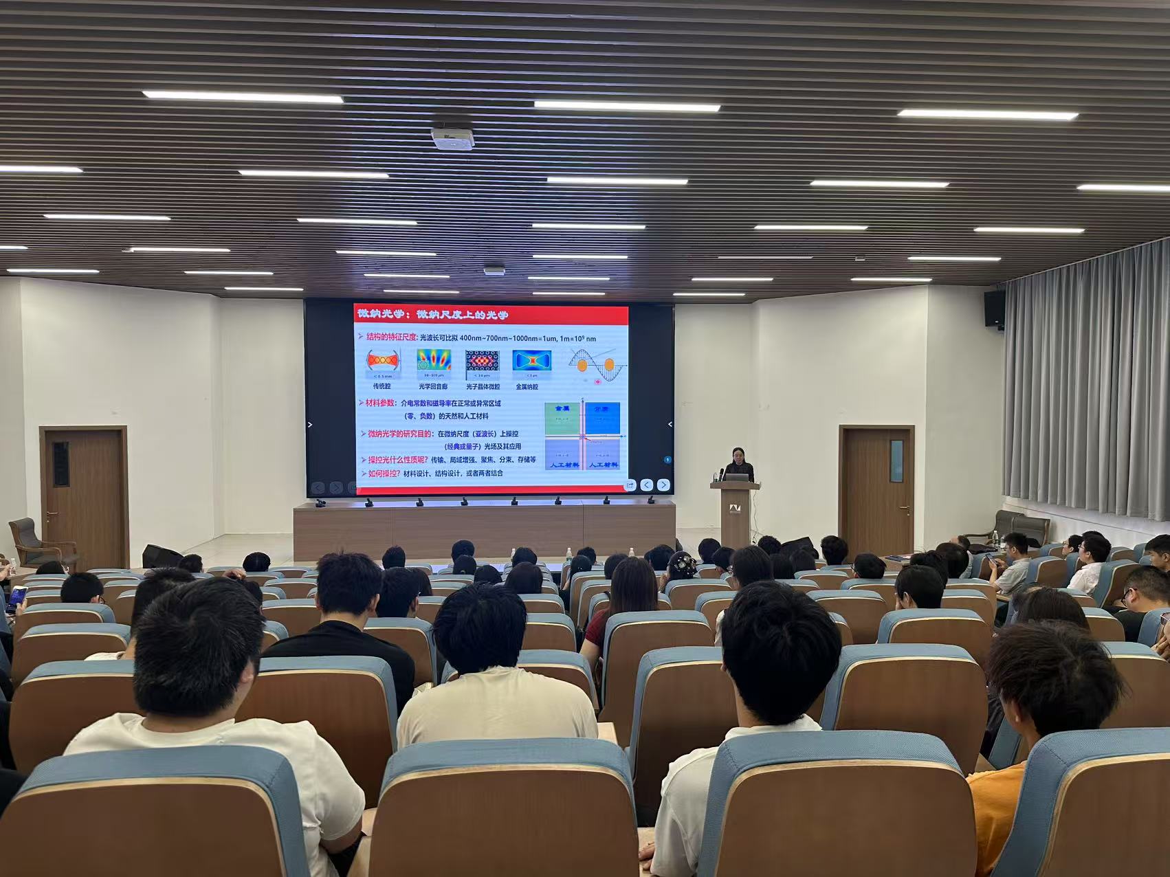 古英在报告中指出,随着量子器件的集成化和小型化,微纳光子学为芯片上量子光学和量子信息研究提供了新的维度和效应。她从多种微纳光子结构及其组合结构中的光学模式出发,深入探讨了量子光场与量子体系的耦合、腔量子电动力学、量子干涉及量子信息等领域的研究进展,揭示了微纳尺度上光与量子体系相互作用的新现象与新效应,为相关领域的理论研究和潜在应用提供了重要基础。此次讲座为永利集团师生提供了与顶尖学者面对面交流的机会,进一步拓宽了学术视野,激发了科研热情。