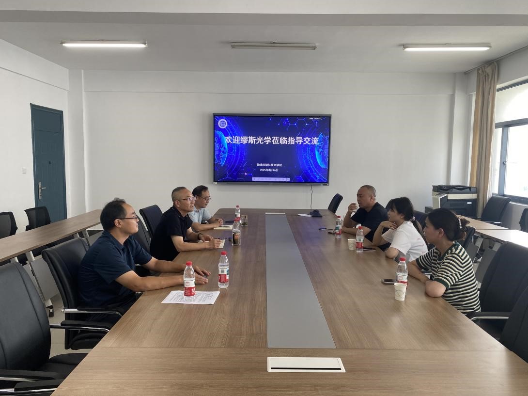 又讯:8月26日下午,缪斯光电董事长缪晓林带队,一行三人来到物科院进行进一步合作洽谈,双方在项目合作与人才引进与培养方面进行了深入交流 。