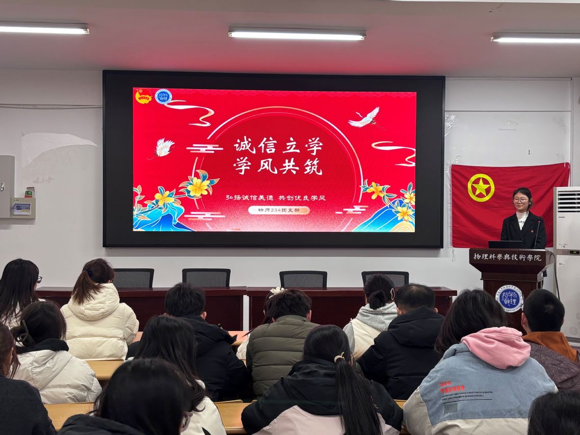 12月,物科院团委组织各团支部围绕“弘扬诚信美德,共建优良学风”主题展开学习,持续开展系列主题团日活动。通过多元的教育与生动的实践体验,切实推动诚信理念融入学生日常学习与生活。今后,学院将不断深化教育,让诚信成为全体学生内心深处的价值坚守与行动自觉,为营造优良学风、构建诚信校园贡献力量。