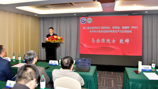 马余强在开幕式致辞中强调,钙钛矿材料作为材料科学与凝聚态物理交叉融合的重要前沿方向,兼具深刻的科学意义与广阔的产业化前景。他指出,广大科研工作者应与产业界紧密协同,聚焦关键科学问题与核心技术挑战,加快推动基础研究、技术突破与产业应用的深度融合,为我国在新材料领域培育新质生产力、实现高水平科技自立自强作出贡献。